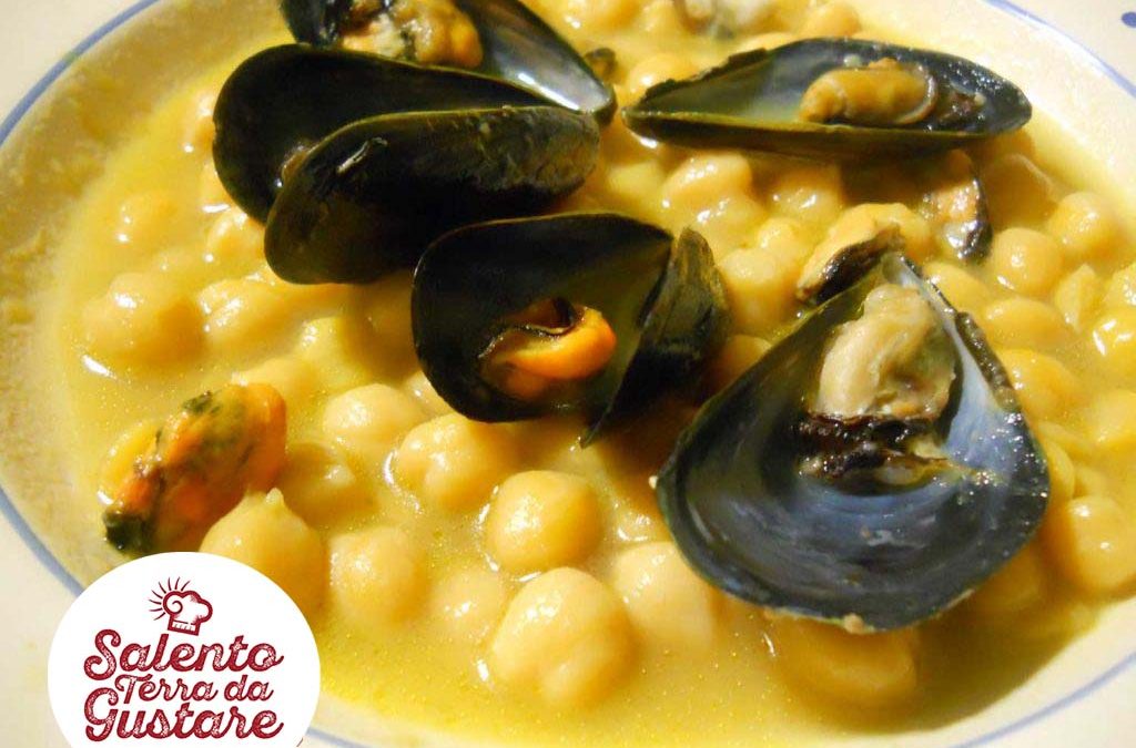 Si dice che il periodo migliore per mangiare le cozze sia quello dei mesi senza la “r”, quindi da maggio ad agosto. Ma per noi salentini le cozze di mare sono una golosità unica per cui non sempre riusciamo ad aspettare la primavera e l’estate per goderne il sapore. Ecco quindi la ricetta della zuppa di ceci e cozze, una ricetta che abbina un tipico ingrediente di terra, come i ceci, con il sapore del mare portato da questo frutto di mare. Il mio consiglio? Servire calda, anzi caldissima e accompagnata da una croccante puccia di grano duro.